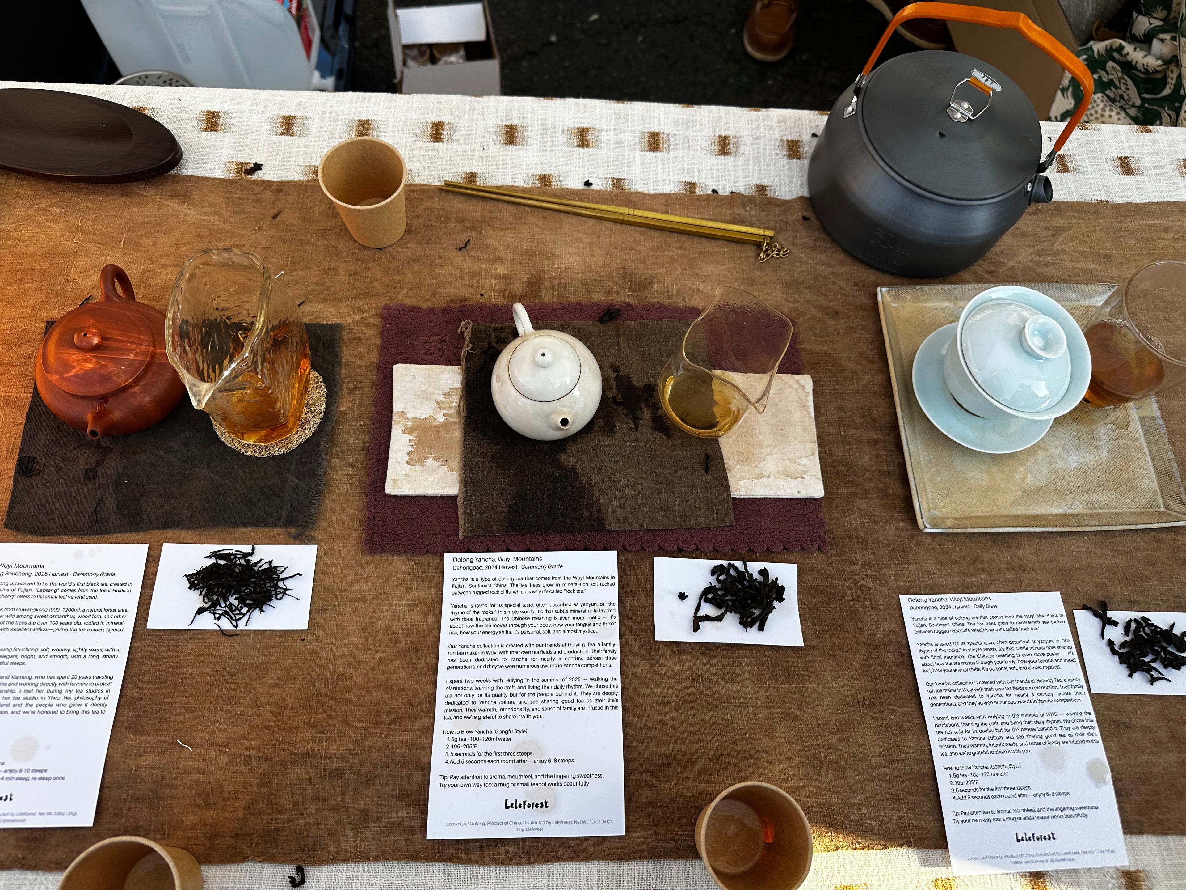 In 2025, after leaving my corporate job, I officially started my journey of teas. I spent four months traveling through China to understand tea more deeply. I visited tea farms and studios, stayed with a tea-making family in the Wuyi mountains, learned modern Chinese tea studies in Hangzhou, and hiked into ancient tea forests in Yunnan. Meeting growers, makers, their stories and the land itself reshaped how I see tea: not just as a drink, but as a living culture.